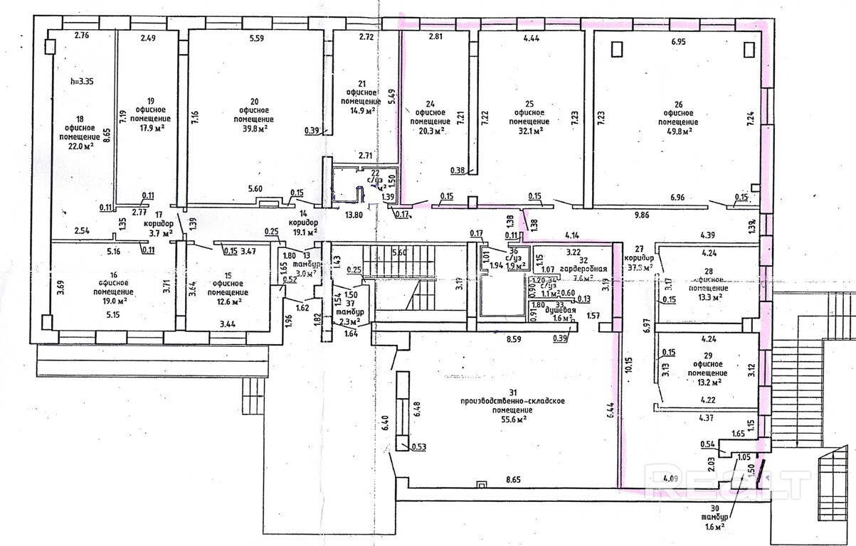 Пять отдельных офисных помещений с хорошей отделкой. Разведено оптоволокно, в каждой комнате кондиционер.