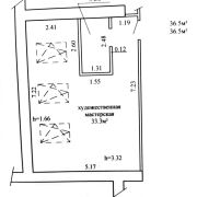 - Помещение площадью 36,5 метров квадратных расположено на мансардном этаже 5-ти этажного кирпичного жилого дома.