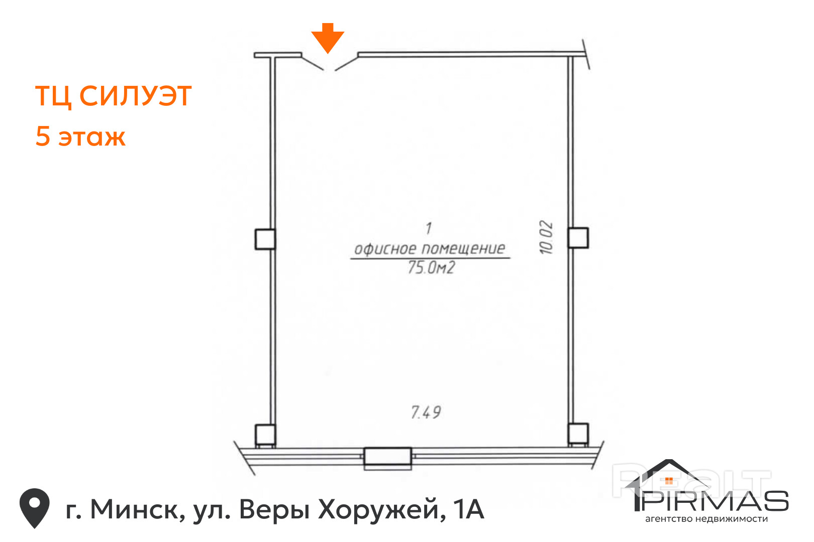 Предлагаем к покупке светлый офис площадью 75,0 м2, расположенный на 5-м этаже бизнес-центра «Силуэт» по адресу: г. Минск, ул. Веры Хоружей, 1А. Здание находится в самом центре города — в Советском районе, в 100 метрах от станции метро «Площадь Якуба Коласа». Это одно из самых привлекательных мест столицы для ведения бизнеса или сдачи в аренду.