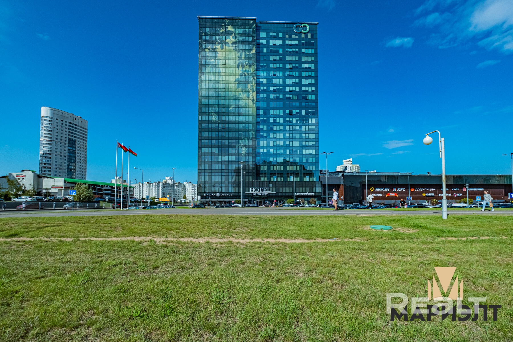 Развитая локация, в Бизнес-центре есть банкомат, кофе поинт, ресторан-кальянная «Шишка Lounge», отделение «Приорбанк».