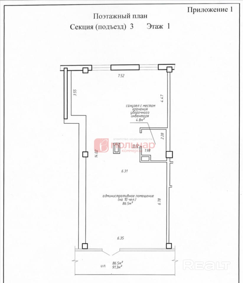 Продажа административного помещения общей площадью 91,3м2 по улице Тимирязева, дом 122. ЖК Олимпик Парк. Новостройка. Первый этаж жилого дома, отдельный вход. С ремонтом, приборы учета, вентиляция, санузел. С арендатором. Цена продажи 2904 дол\м2, с НДС. Покупатель не оплачивает услуги риэлтерской организации.