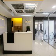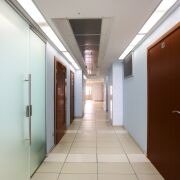 Оборудован двумя кухнями с зоной приема пищи, зоной ресепшн, собственными санузлом и душем, грамотное разделение на отдельные кабинеты, переговорную комнату, а также пространство "Open Space" - 6 изолированных помещений площадью: 24,9 м2, 28,5 м2, 28 м2, 35,1 м2, 23,1 м2, 25,9 м2