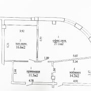 Площадь помещения 69.4 кв.м., включает 4 комнаты (три изолированных, одна проходная) и 2.5 кв.м. площадь санузла (только для работников этого офиса), примыкает к самому помещению.
