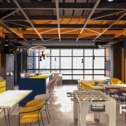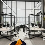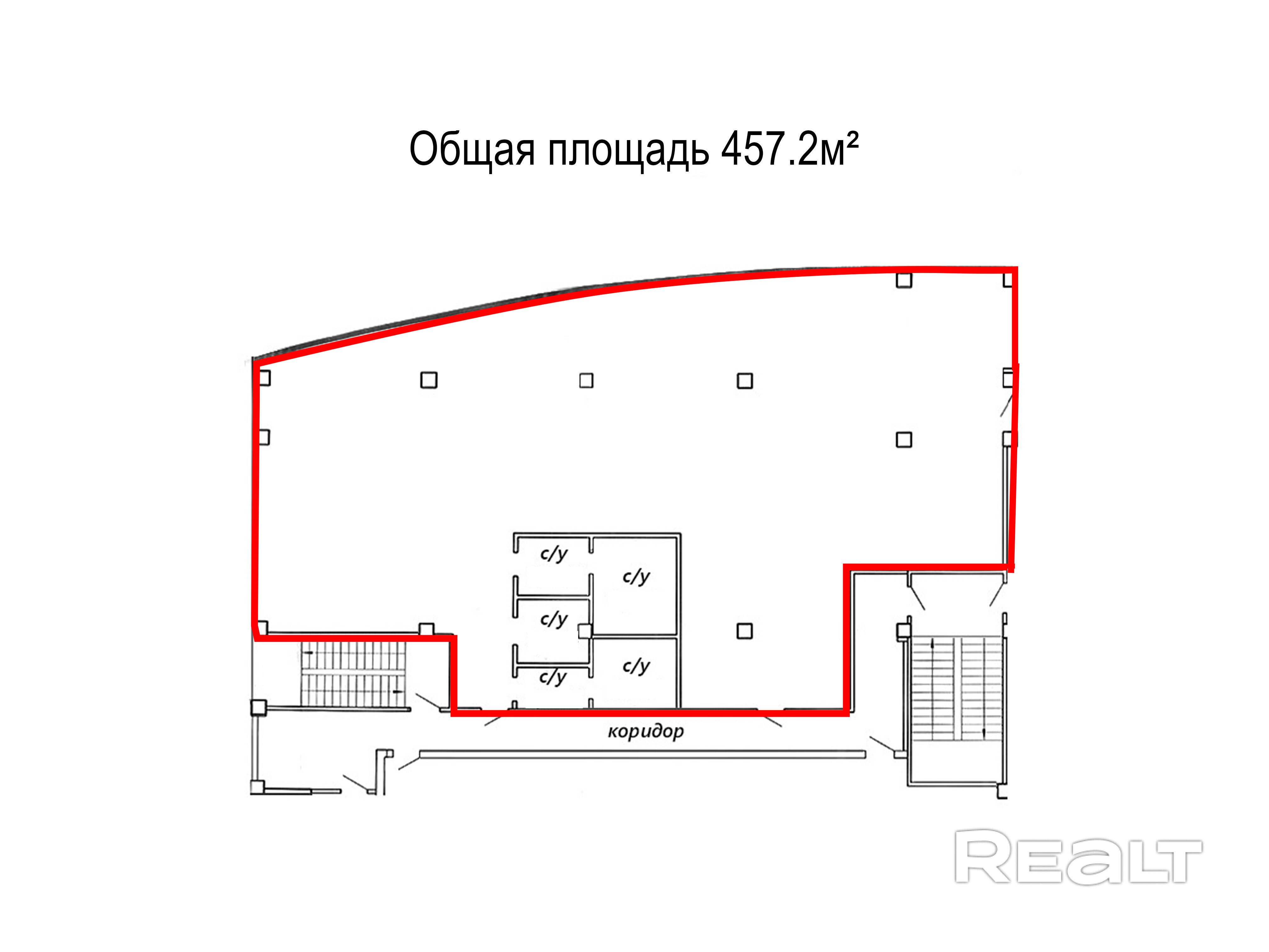 Административное помещение площадью 457.2 кв.м. без отделки, планировочное решение - open space, высота потолков 5,74 м, что позволяет увеличить полезную площадь за счёт оборудования антресоли примерно на 200 кв.м.