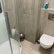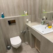 В санузле установлена душевая кабина, имеется кладовая зона. На окнах выполнена тонировка.