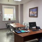 Отделка офиса: напольное покрытие линолеум; стены окрашены; потолок натяжной.