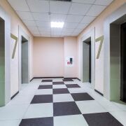 - Выбрав это место, Вы получаете доступ к самым современным удобствам, таким как просторное и светлое лобби с 4 лифтами (грузовыми и пассажирскими), имеются несколько санузлов на этаже.