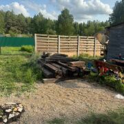 Огорожен каменно-деревянным забором и сеткой-рабицей.
