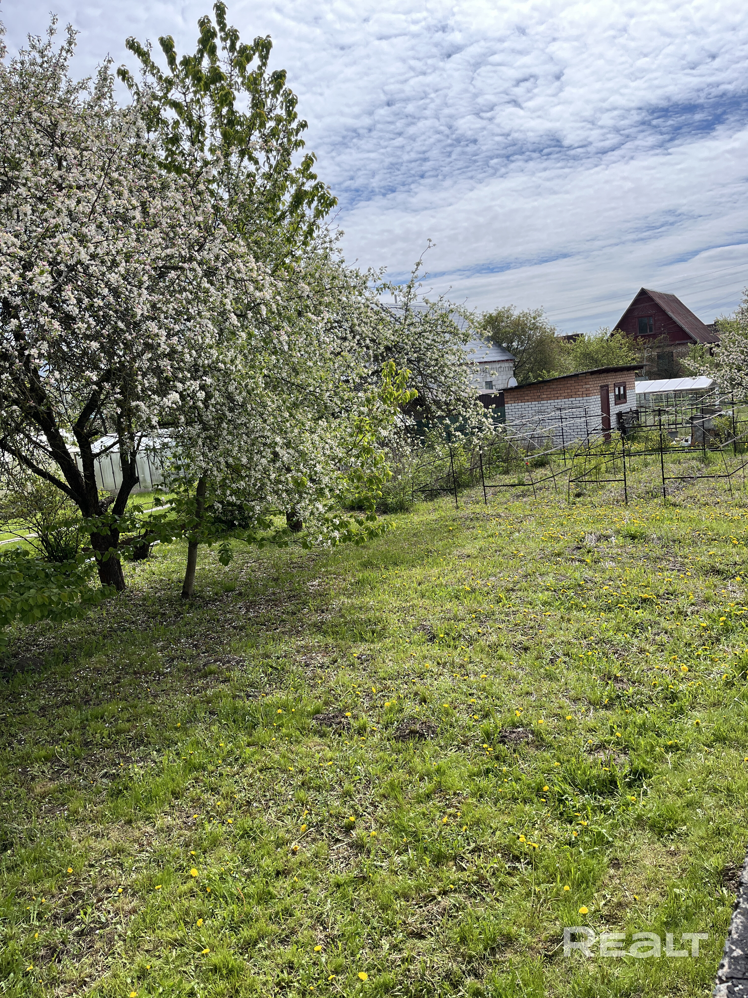 На участке плодовые деревья: вишня, черешня, яблоня, груша.