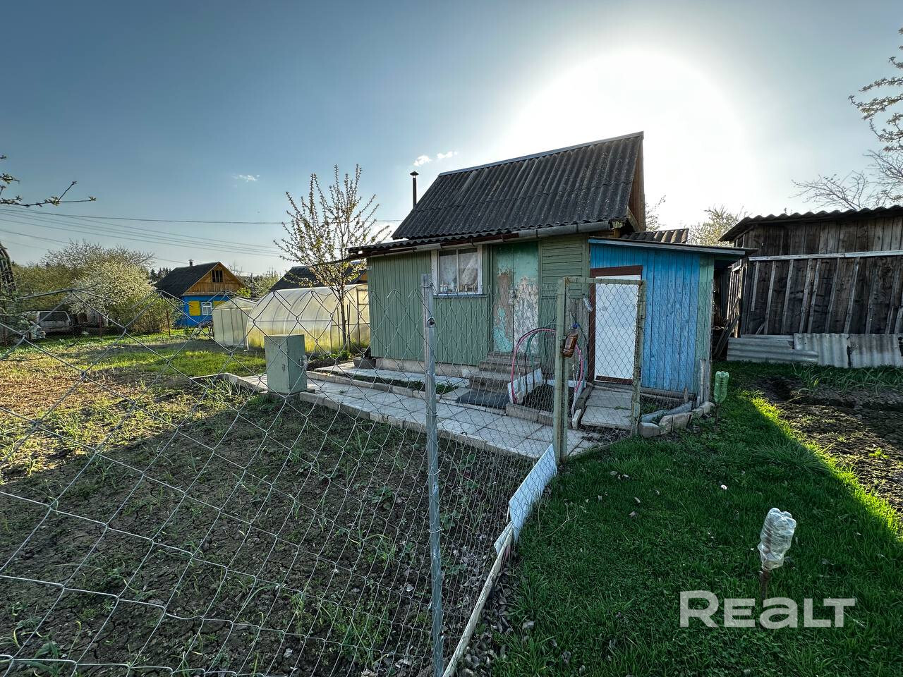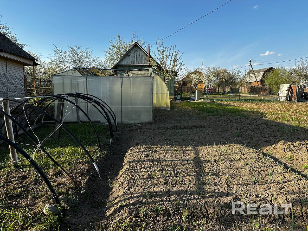 Участок с летним домом теплицами, садом и обработанной землей