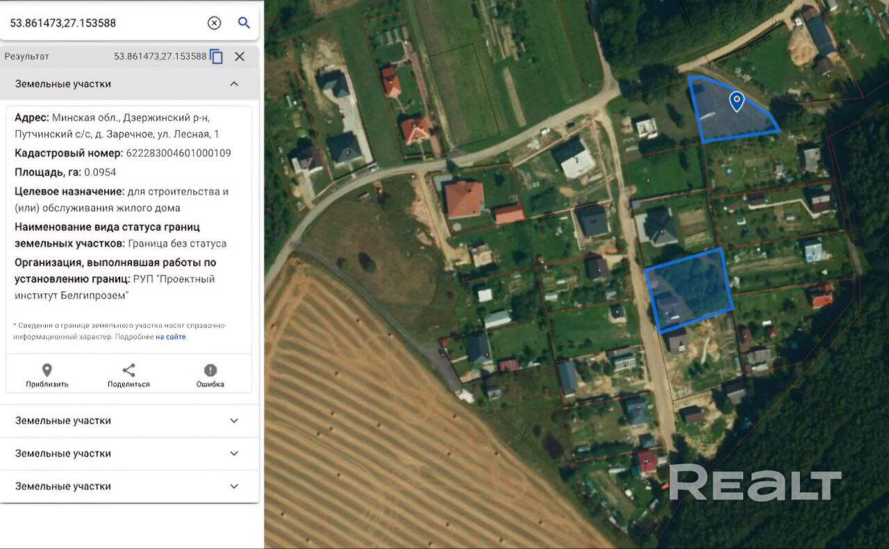 Купить участок, д. Заречное, ул. Цветочная, 7 (Дзержинский р-н, Минская область)