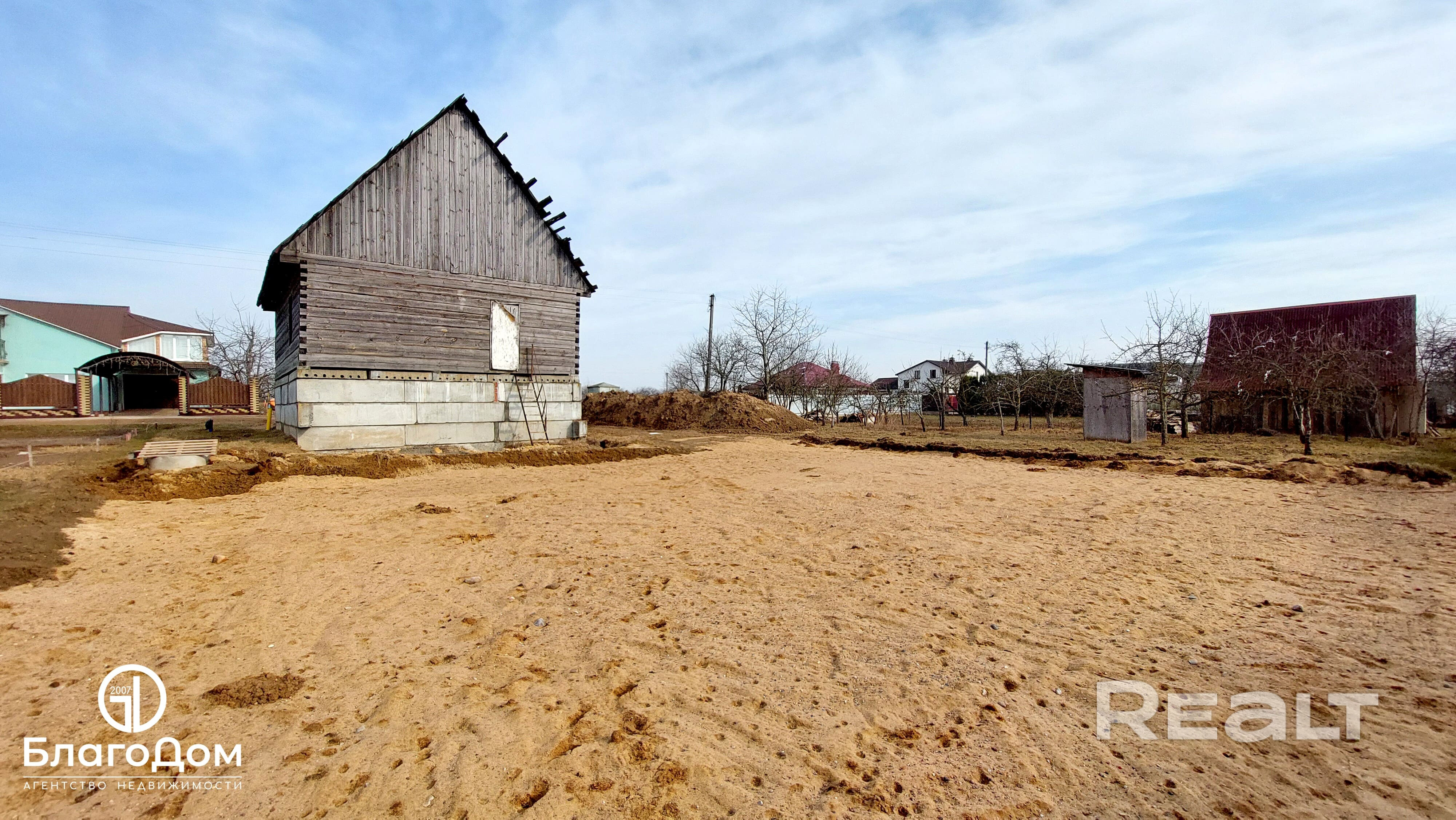Также подготовлена площадка для строительства гостевого дома: снят слой плодородного грунта, подготовлена подушка для заливки фундамента по типу «утепленная шведская плита» или УШП (это фундамент мелкого заложения, который представляет собой монолитную железобетонную плиту со встроенными коммуникациями и системой обогрева «теплый пол»), установлена система канализации (два колодца 1.5 м с переливом, глубина 3 м, объем 9 кубов).