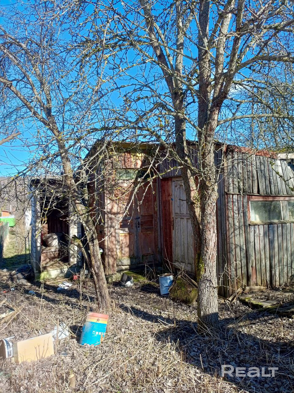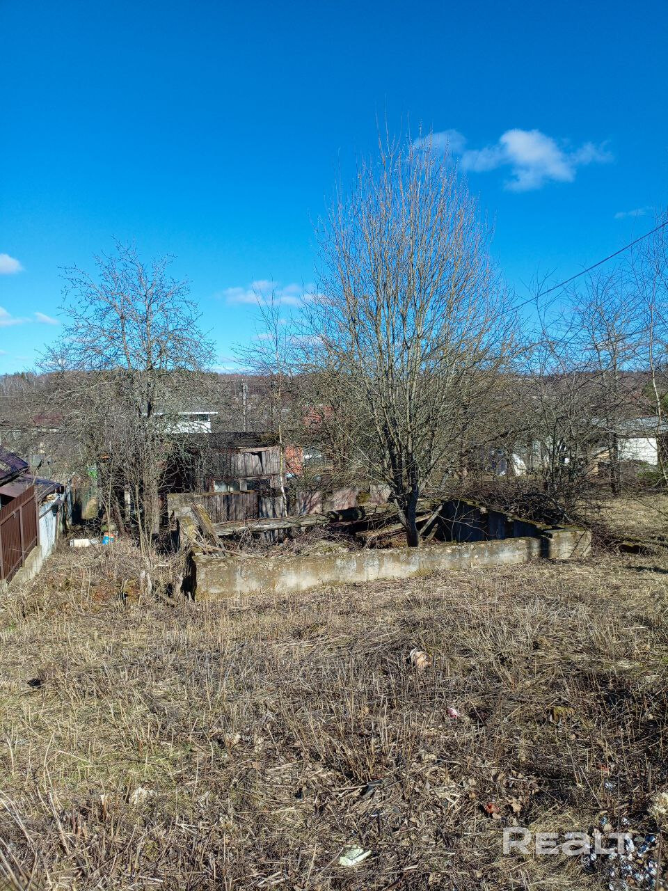 СТ Ивушка-1, 30км от МКАД. Сезонная вода, электричество на столбе. Фундамент 6.4х8.0м (старый, но бетон прочный). В сарае есть бетонный погреб. Плодовые деревья. Маршрутки до СТ из Минска и от ж.д. станции.