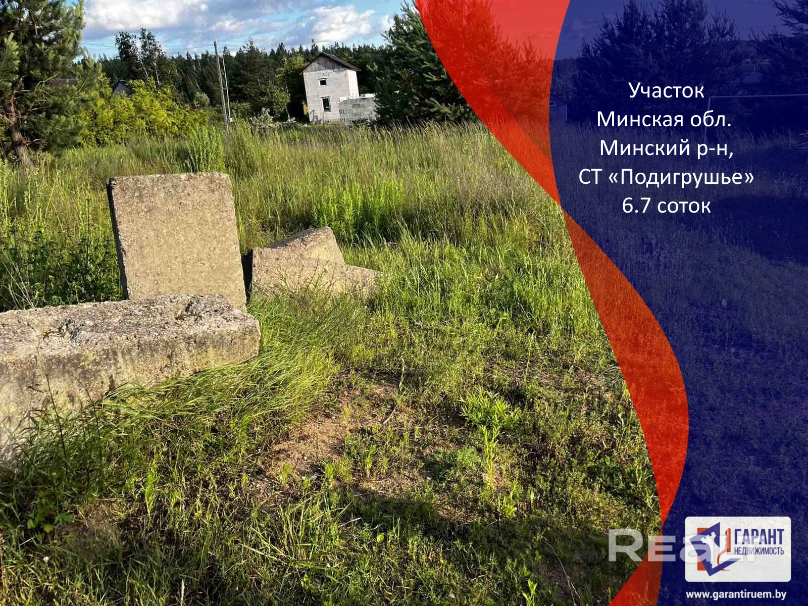 Участок 6,7 соток по востребованному Московскому направлению! Участок в садовом товариществе, соседи с 3-х сторон. Многие постоянно проживают. Большое преимущество -асфальт до товарищества! Коммуникации в СТ: газ-баллон, свет столб, вода-сезонная. Участок ровный. На участке залиты четыре точки под дом и имеются четыре блока. На участке ловит интернет (МТС). Удобное транспортное сообщение с Минском : электричка остановка Загорье, маршрутка, автобус.
