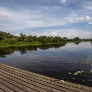 Территория окружена разнообразной растительностью – высокими деревьями, кустарниками создавая естественную границу и тень. Шум воды и пение птиц создает атмосферу спокойствия и гармонии.