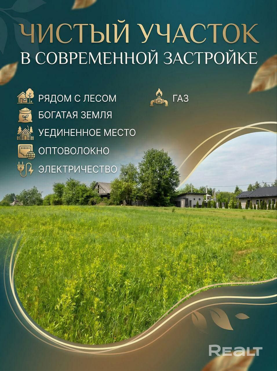 Чистый участок без мусора, более 15 соток в современной застройке, 17 км от