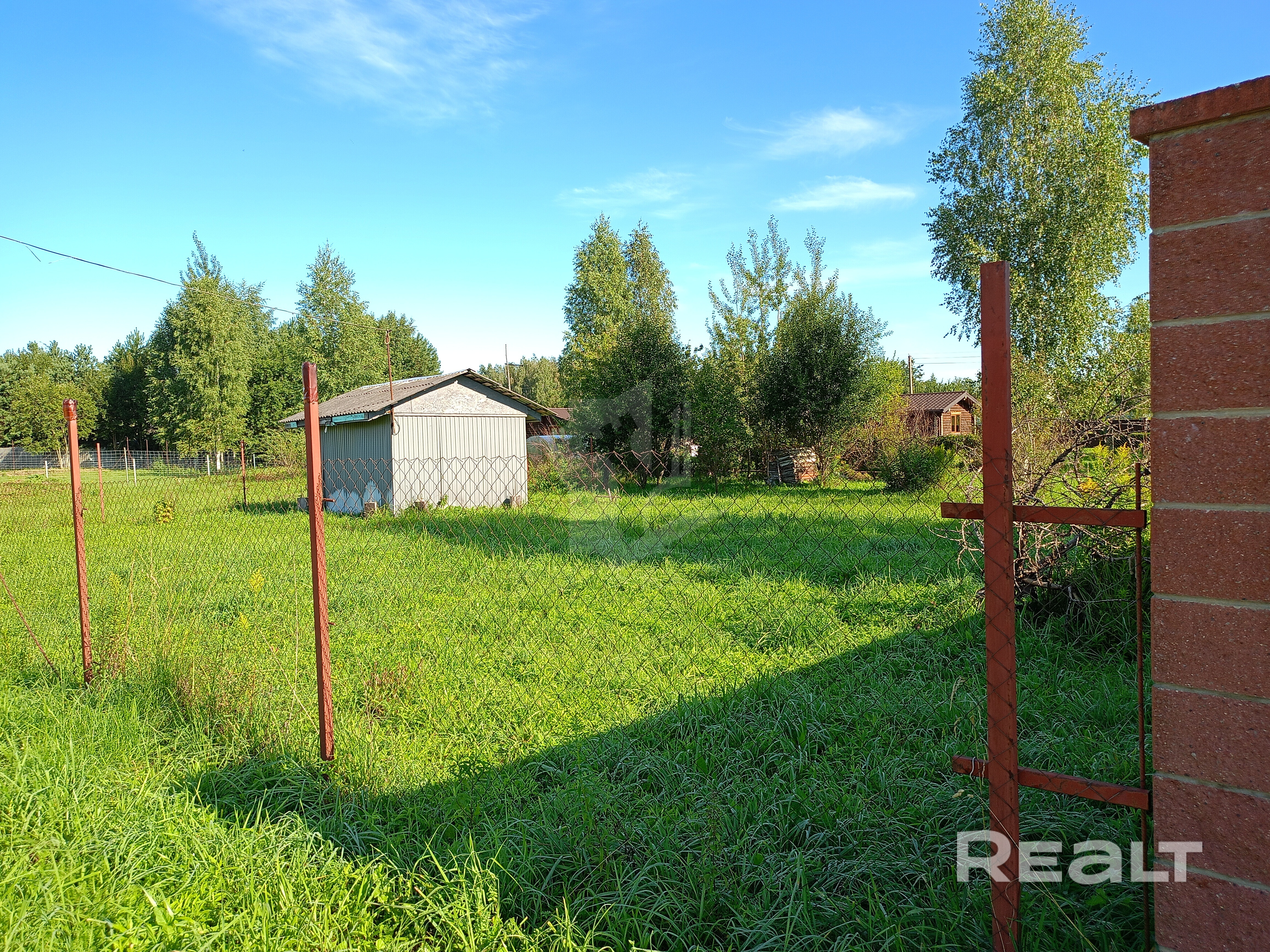 огорожен., оцинкованная сетка, новые столбы, калитка с новыми высокими столбами 1,5 м. и ворота-4,80 м.