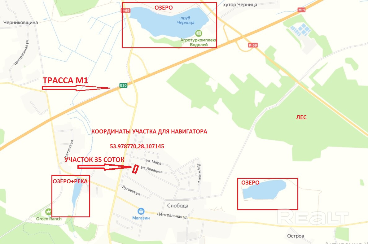 Земельный участок 35 соток в центре современной коттеджной застройки а.г. Слобода Смолевичского района (Пекалинский с\с) по улице Аэродромная.