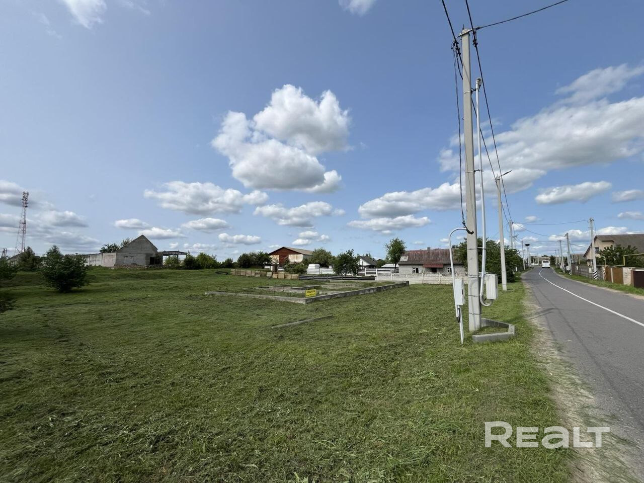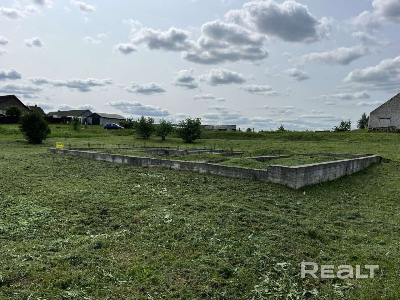 В 35 км от Минска по Могилевской скоростной трассе, до участка 30 минут. На участке законсервированный фундамент.Асфальт к участку, жилой поселок, свет есть. Срочно!!!