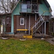 На участке стоит аккуратный деревянный домик с печкой и мансардным этажом — тёплый, светлый и очень домашний. Всё продумано для комфортного отдыха: есть сарай, летний душ, место для приготовления шашлычка, качели, детский домик для игр.