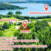 Новый коттеджный посёлок на 44 дома; участок №43; панорамный вид на водоём; участок лучший в застройке, примыкает к лесу; застройка окружена сосновым лесом; отличная природа; рядом парк отдыха `Дубровский` с пляжами; свет 380 на участке, центральный водопровод на участке, газ на участке; оптоволокно проектируется;