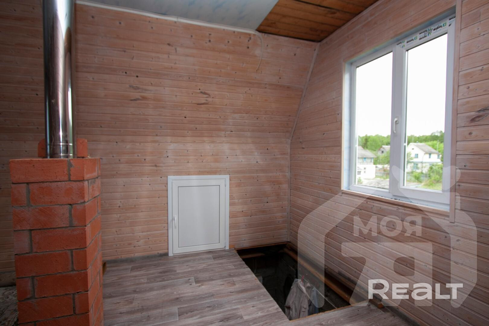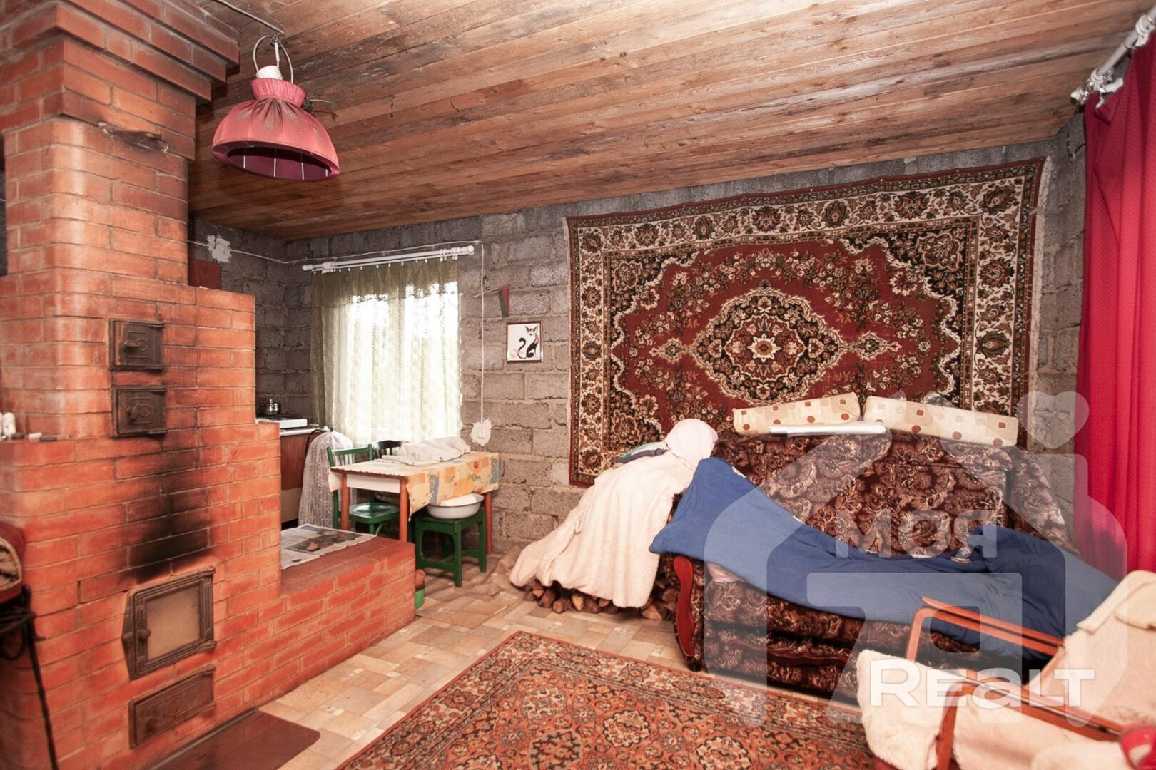 - Дом состоит из керамзитобетоных блоков, установлены ПВХ стеклопакеты, кровля ондулин. В доме установлена новая русская печь-камин с лежанкой, второй этаж обшит вагонкой и полностью готов. Строительство не завершено - черновые стены на первом этаже требуют вашей отделки.