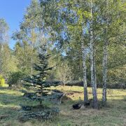 ул. Центральная 1Б Продается эксклюзивный участок 25 соток в окружении соснового леса с трех сторон , прямоугольной формы, ровный, с прямым выходом в густой и красивый лес. Соседи только по одной стороне. Не приезжают. Проживают за границей. Жилая деревня. Зимой дороги чистятся. Уникальное, живописное место в дали от городской суеты. 55 км от МКАД по прямой Брестской трассе. На участке построен Каркасный домик 23м2 (планировка для бани), дом зарегистрирован. Есть своя скважина. Чистая продажа.