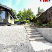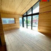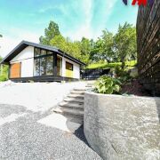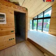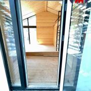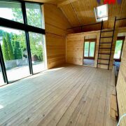 - Современное отопление – электрический тепловой насос с удалённым управлением, а вода доступна круглый год благодаря бойлеру для горячей воды. Санузел выполнен с использованием керамической плитки, оснащён теплым полом, душевой кабиной и современной инсталляцией с унитазом, что гарантирует высокий уровень комфорта.