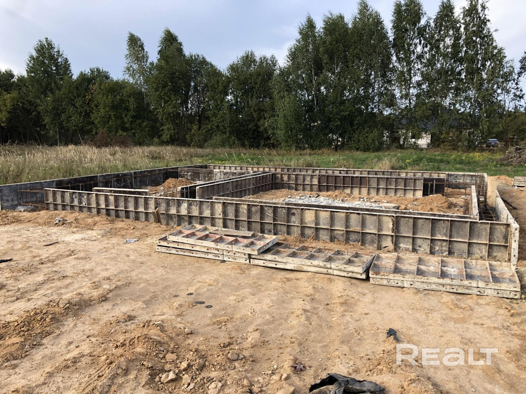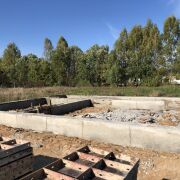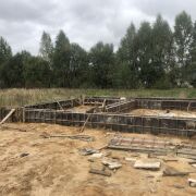 Готовый фундамент: Срок строительства значительно сокращается благодаря уже возведенному ленточно-свайному фундаменту.