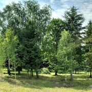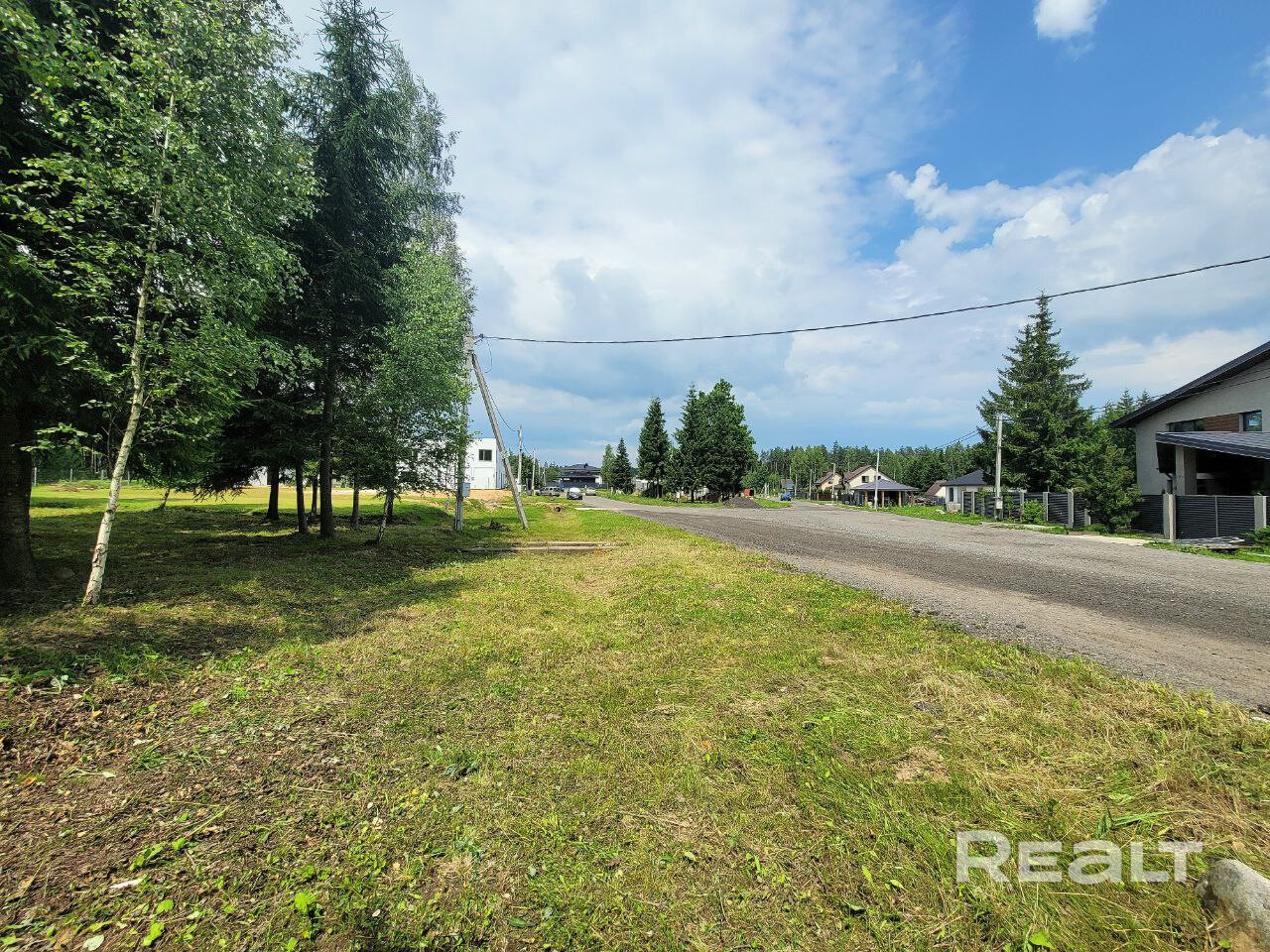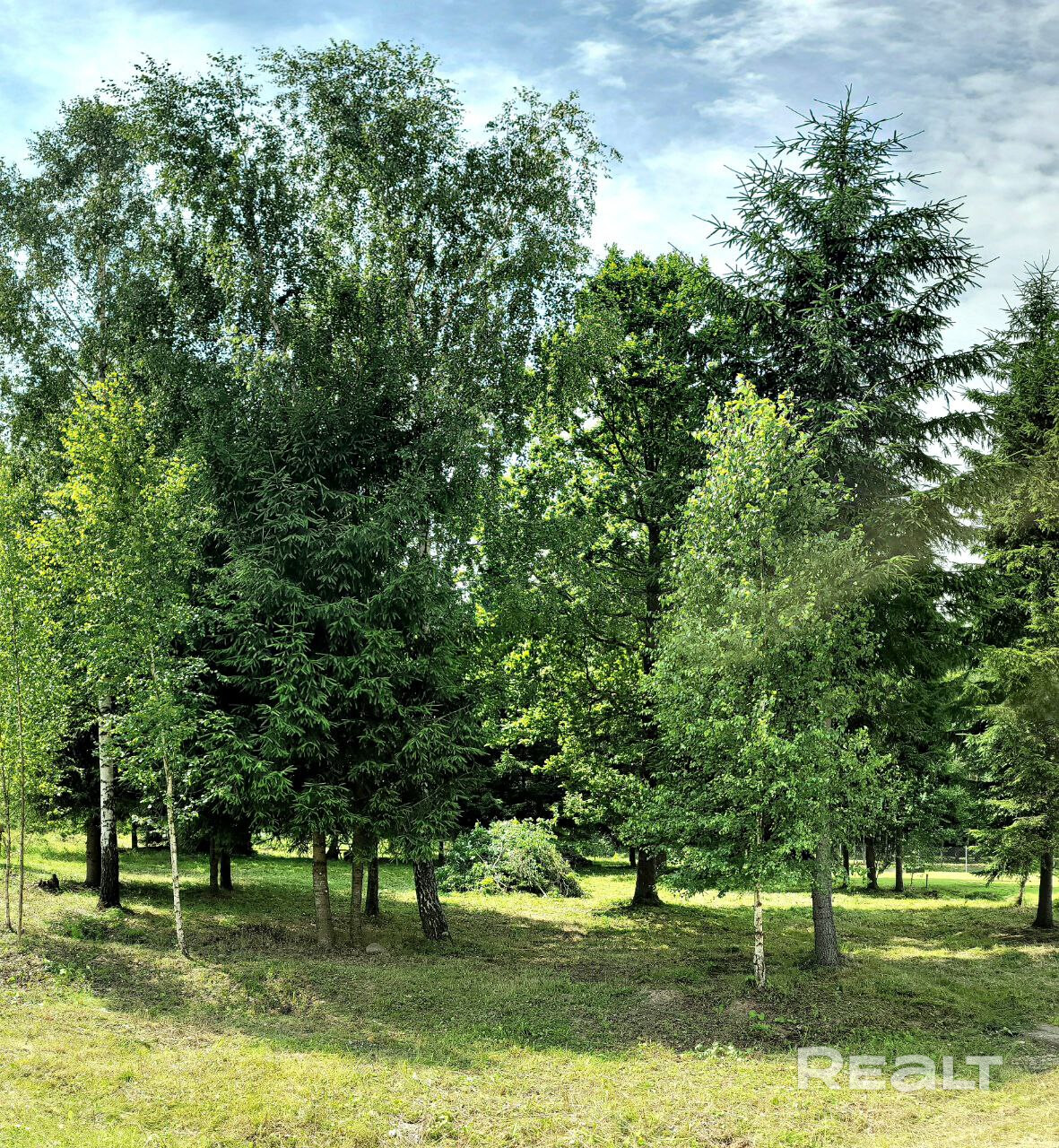 Ровный участок с взрослыми елями и дубами непосредственно граничит с лесным массивом и находится в нескольких минутах ходьбы от озера Дички. Уже подготовлен для строительства: подключены электричество и центральный водопровод, вдоль границы проходит газовая труба, проведено оптоволокно. Территория товарищества полностью ограждена и охраняется, въезд осуществляется с пульта или по звонку. Дороги с твердым покрытием регулярно чистятся зимой, что обеспечивает комфортное круглогодичное проживание.