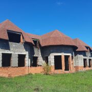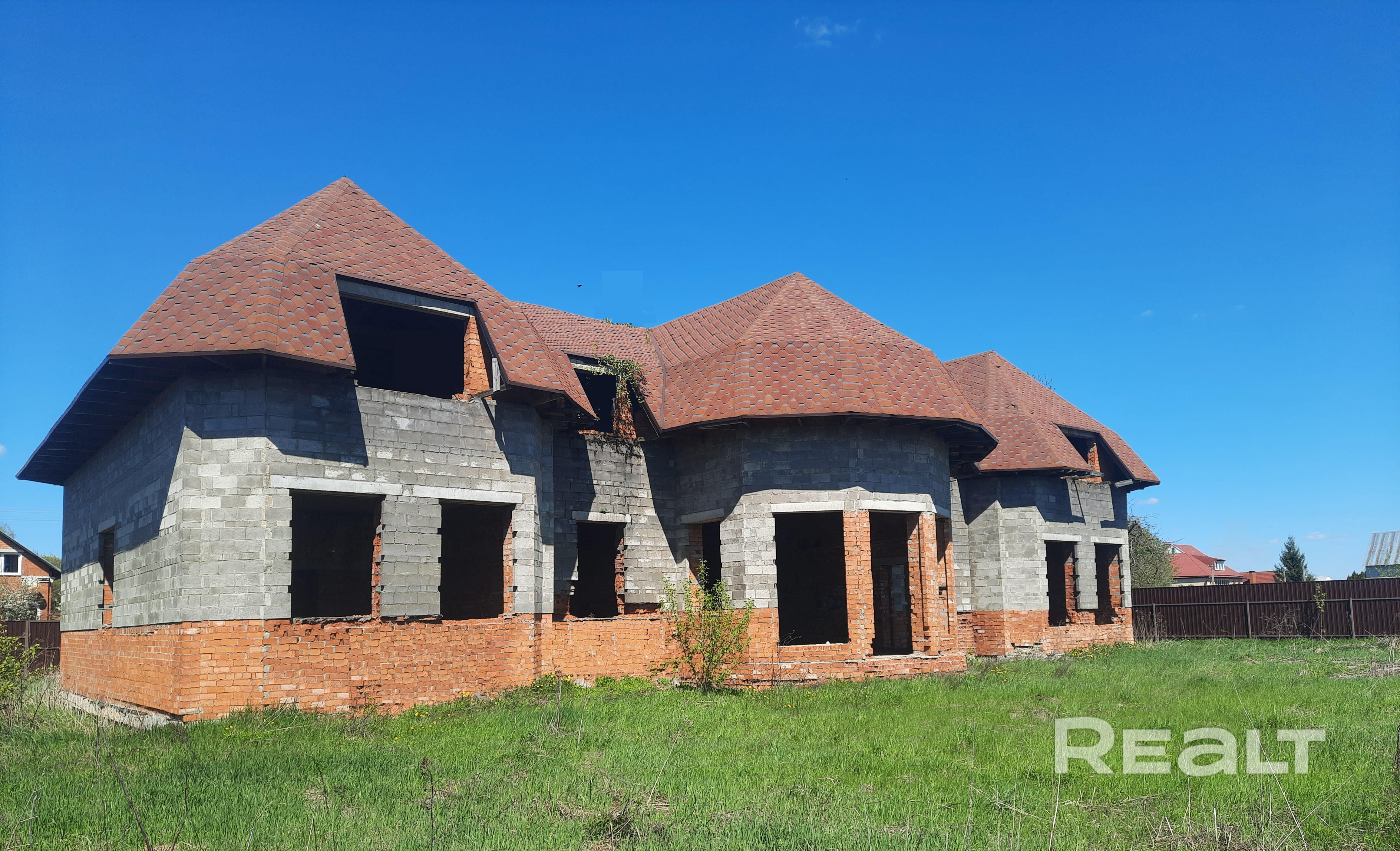 Земельный участок 18 соток в частной собственности, ровный. Недалеко лес. 2-х этажный дом (незавершенное законсервированное строение).