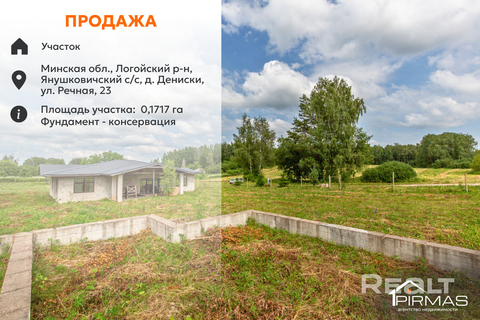 ✅ Земельный участок 0,1717 га с фундаментом в д. Дениски, Логойский район