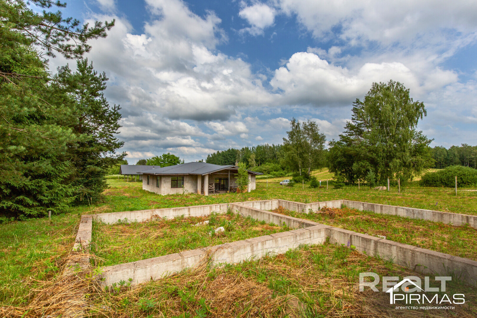 На участке расположен законсервированный фундамент. Первоначально он планировался под строительство гостевого дома. Возможны варианты использования под жилой дом, баню либо иное капитальное строение — в зависимости от задач будущего собственника. Наличие фундамента позволяет сократить сроки и затраты на начало строительства.