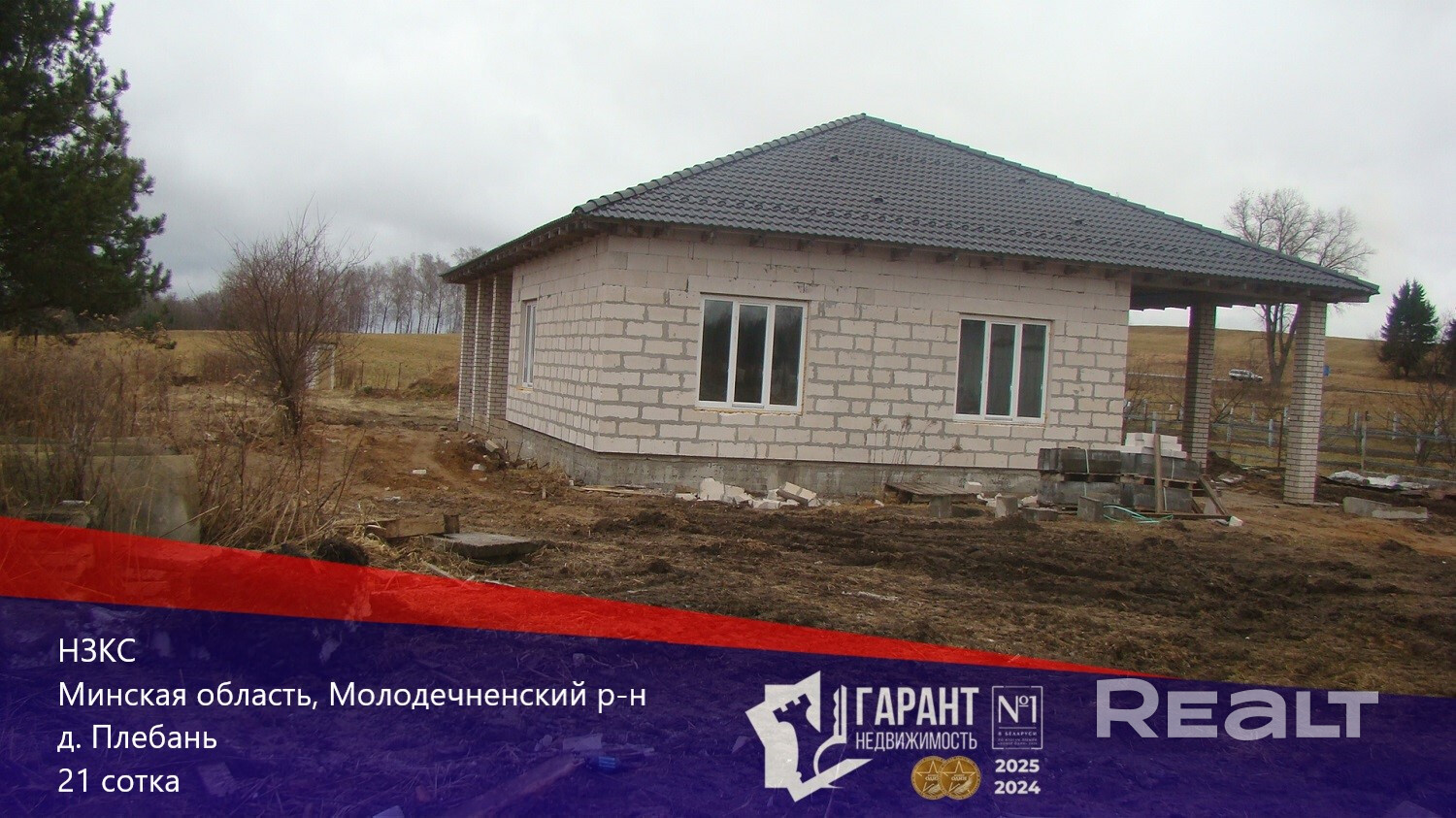 Продаётся коробка на 180 м2, законсервирована + участок 21 сотка в частной собственности. Участок ровный правильной формы с обозначенными границами, к участку подходит асфальтная дорога. Деревня живая, на трассе Молодечна-Минск, есть остановка ходят маршрутки, в 3 км. п. Красное с инфо-структурой магазины, аптеки.
