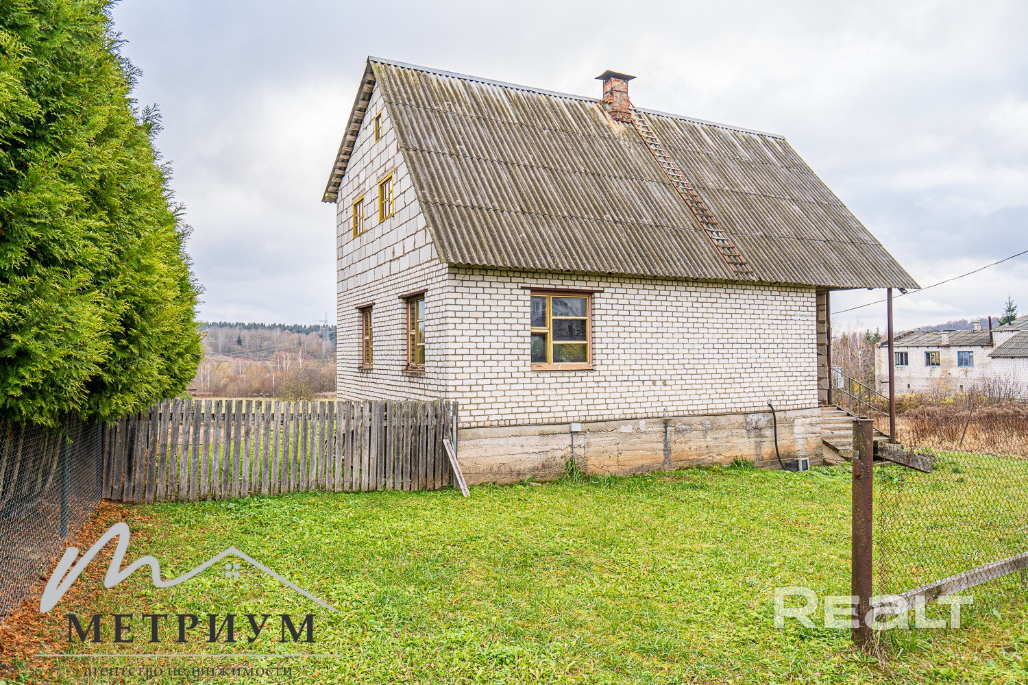 Двухэтажный дом: Построен из силикатного блока и кирпича.