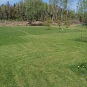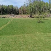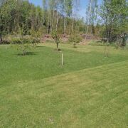 Участок имеет правильную, почти квадратную форму, огорожен сеткой рабицей. Ровный, солнечный, крайний от леса.