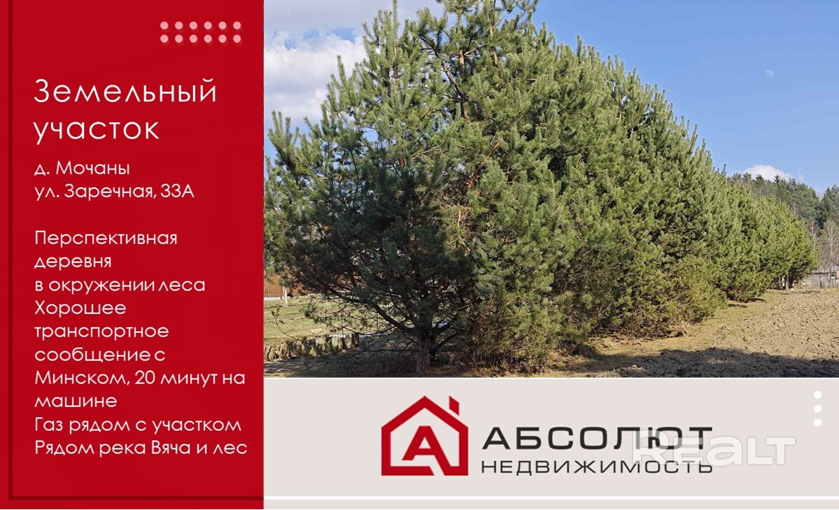 Продается земельный участок 10,28 соток 12 км от МКАД в современной деревне Мочаны, ул.Заречная, 33А (Мядельское направление, Логойский район, Беларучский с/с).