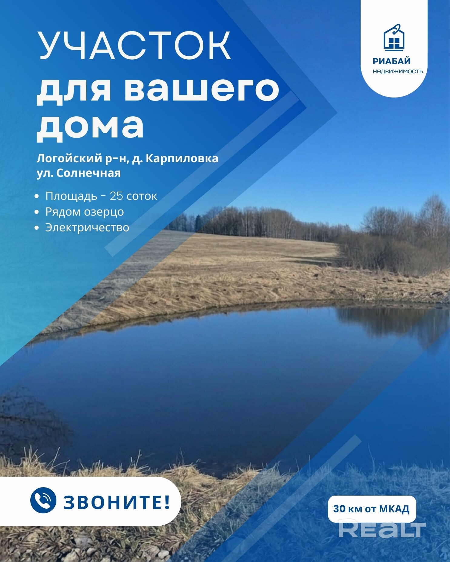 Расположение: д. Карпиловка, Логойский р-н. 25 минут от МКАД по отличной трассе.