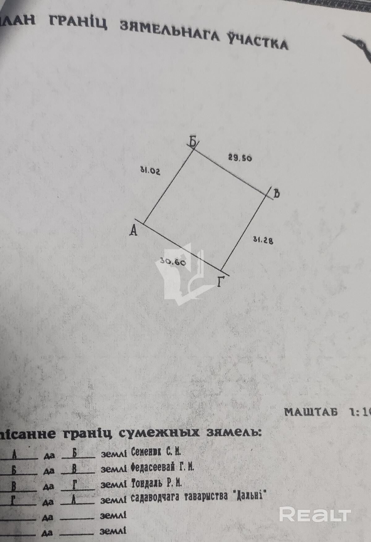 - Площадь участка