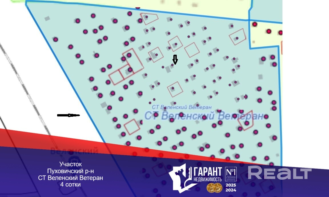 Продается земельный участок в СТ «Веленский Ветеран» 3/4 доли в Пуховичском р-не, расположен в 60 км. от Минска. Участок находится в 10 км. от г. Марьиной горки, рядом с ж/д остановкой «Веленский» (ветка на Осиповичи).