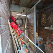 Растения (пока небольшие): три войлочные вишни, черешня, штамбовая смородина (черная, красная), крыжовник, декоративная ива, два рододендрона (азалии).