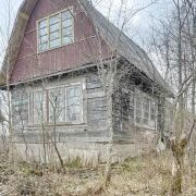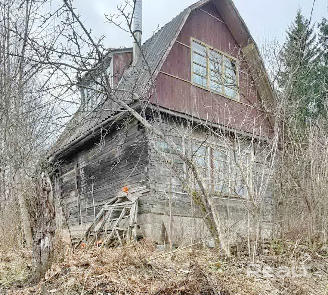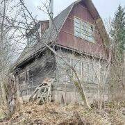 На участке построен двухэтажный деревянный дом с печным отоплением, одна большая комната на первом этаже и одна на втором, есть мебель. Крыша шифер, окна, двери, полы и перекрытия из дерева. Общая площадь дома около 35м. Электричество заведено в дом. Есть сарай и туалет.