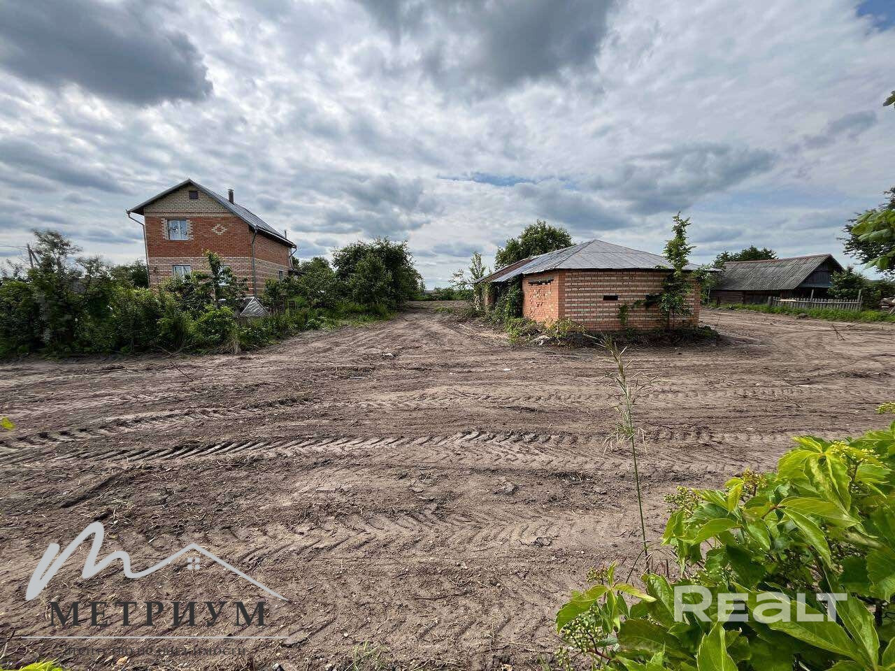 Участок ровный, есть кирпичная хоз постройка, колодец, плодоносящие груши и яблони. По участку разведены трубы для полива.