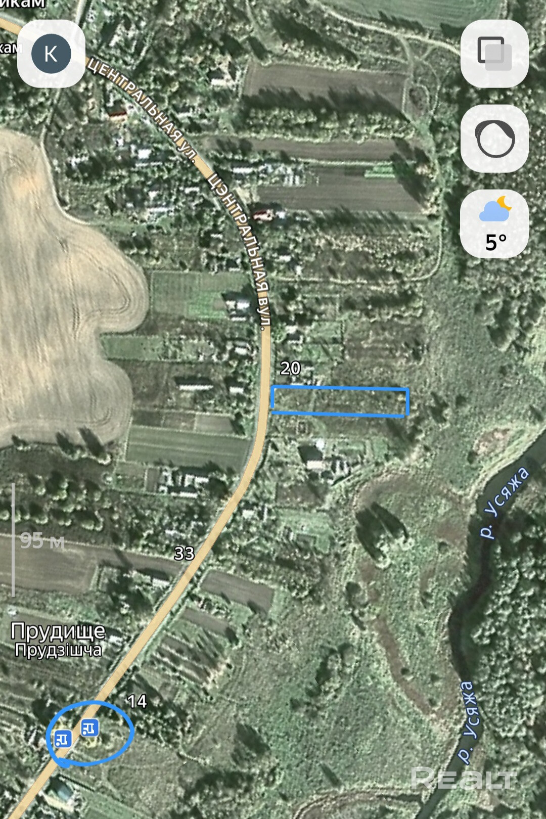 Участок под ЛПХ в частной собственности 20 соток в д. Прудище (Минская область, Усяжский сельский совет) Чистый участок для будущего строительства без сада и построк, за участком река, рядом лес. Прямо рядом с участком проходит асфальтированная дорога, есть возможность подключения к электричеству и газу. Рядом проходит оптоволокно для подключения быстрого интернета. Остановка общественного транспорта рядом с участком (в 100 метрах), ежедневно ходят автобусы в Минск, Смолевичи, Жодино.
