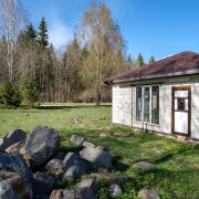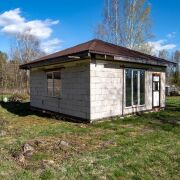 - Одно просторное помещение с высокими потолками под шатровой крышей – идеально для гибкой планировки под ваши нужды. На участке подготовлена площадка из кирпича под будущую террасу – отличное место для летнего отдыха с видом на лес. Коробка полностью готова к внутренней отделке и декорированию согласно вашему проекту.