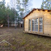 Участок ровный 0,0994 га. В частной собственности. Дом одноэтажный 30 кв.м., материал стен - профилированный брус, с тыльной стороны панорамное остекление. Электричество 220В и 380В проведено в дом, вода сезонная. Санузел на улице (подведен свет).