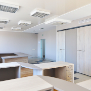 В офисе 5 кабинетов с большим просторным проходным помещением- залом, имеется несколько подсобных помещений.