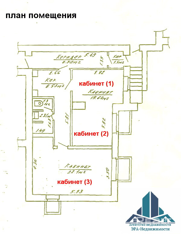 - в наличии: 3 кабинета, место для администратора (ресепшен), санузел;
