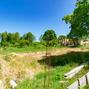 Коммуникации: природный газ, центральная вода, центральная канализация, централизованное отопление -25 м от участка, электричество. Своя нерабочая скважина.