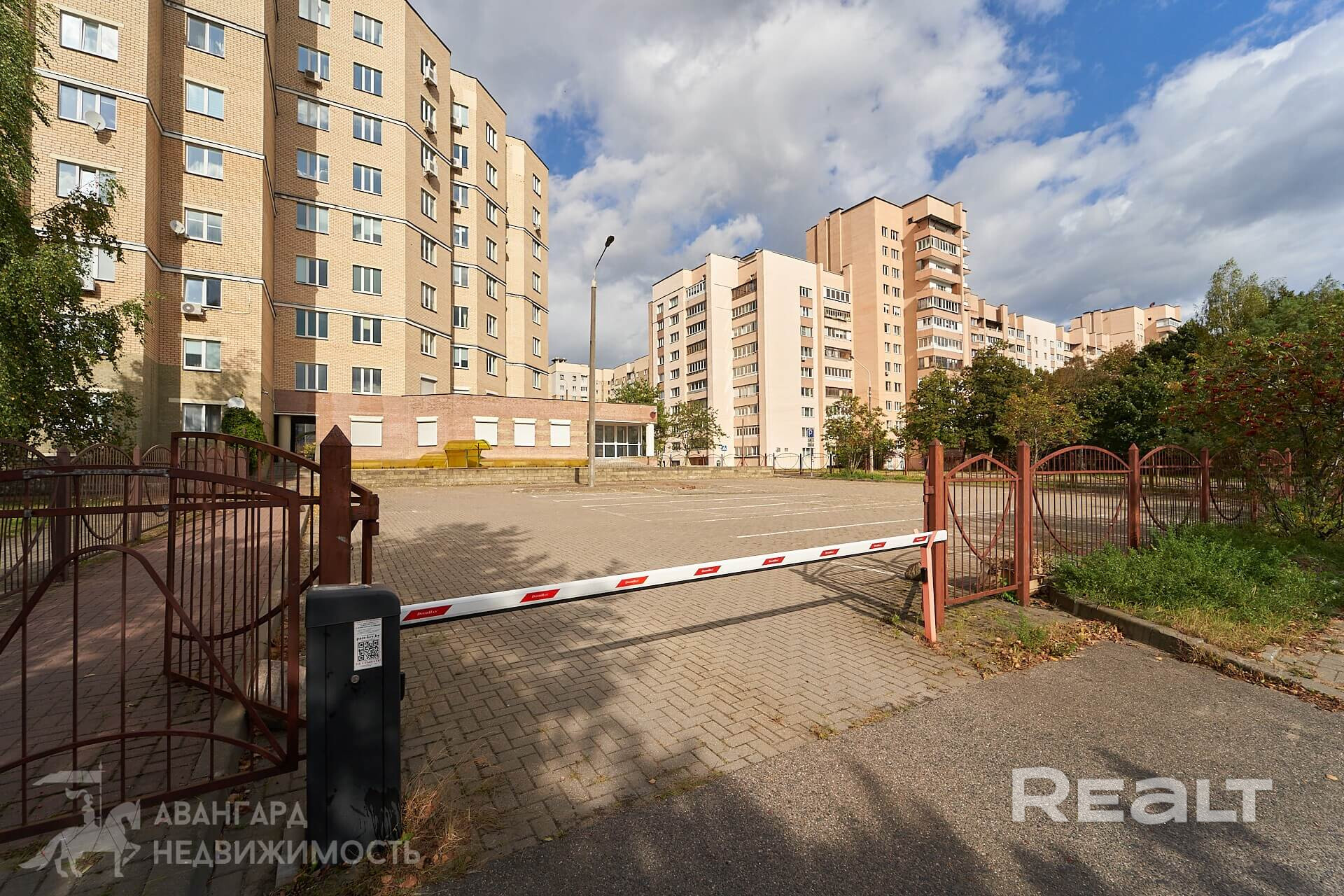 Огороженная территория, шлагбаум. Собственная парковка на 32 автомобиля.